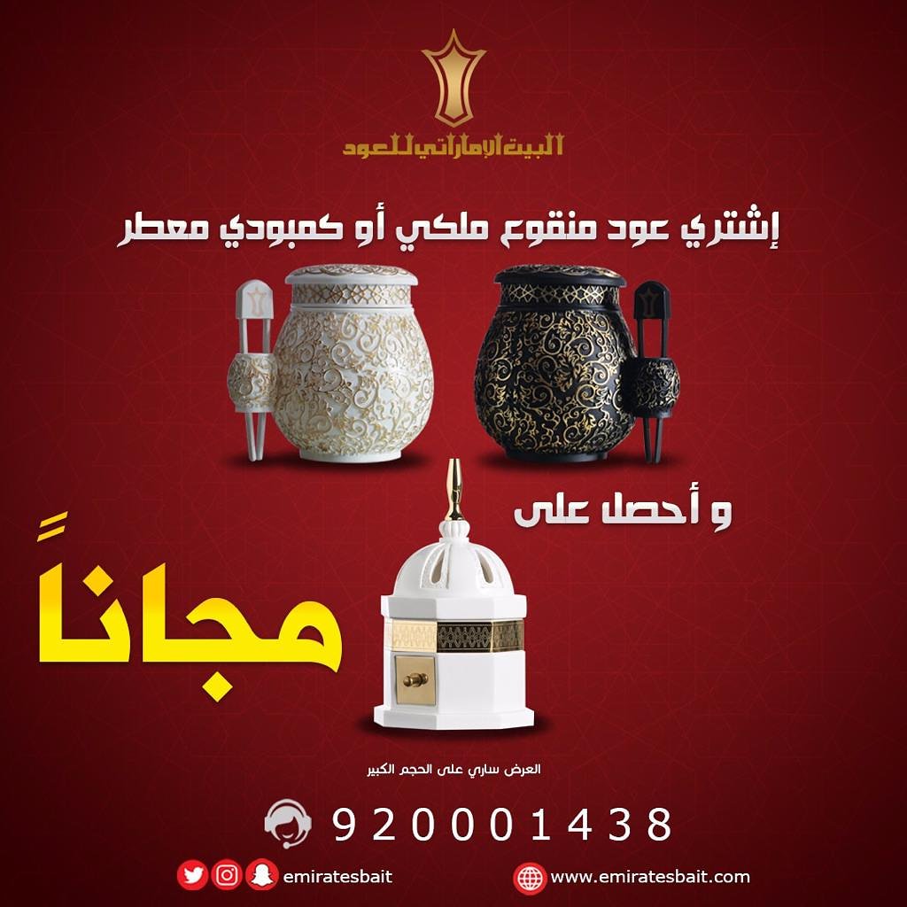 البيت الإماراتي للعود On Twitter آخر عروض البيت الإماراتي للعود أشتري عود كمبودي معطر او عود منقوع ملكي الحجم الكبير واحصل على مبخرة القبة مجانا مستمر العرض حتى نفاذ الكمية المحددة