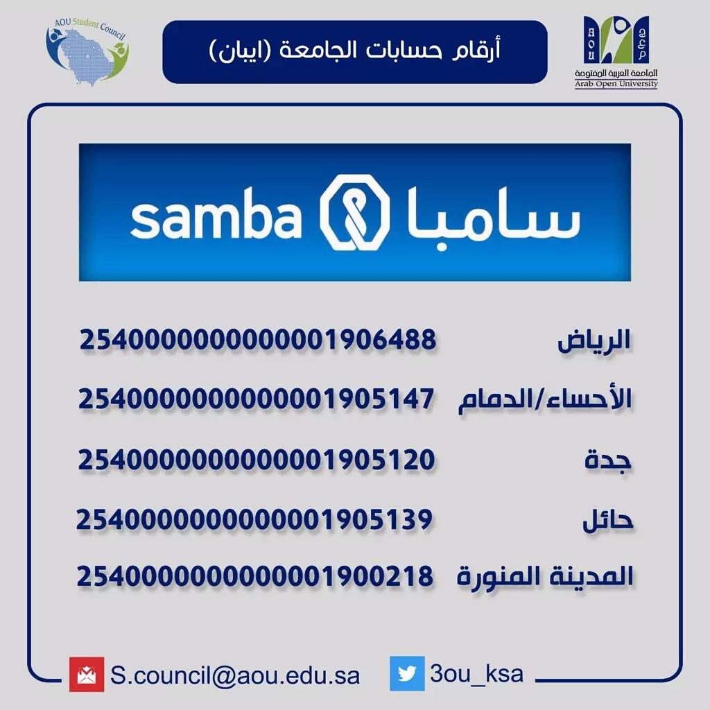المجلس الطلابي Aou Ksa On Twitter أرقام حسابات الجامعة العربية المفتوحة في بنك سامبا Aou Ksa Aou السعودية Http T Co Zjhdqnzbjv